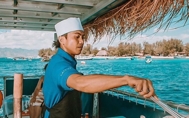 Once your surface from the water, enjoy a delicious BBQ cooked fresh on board. Make some new friends while you take in the beautiful breathtaking views, cold beer and tunes! After enjoying all these activities you go back crossing Gili Air to Gili Trawangan about 20 minutes by boat.